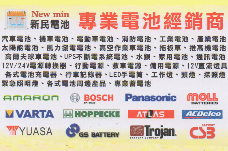汽車電池、機車電池、電動車電池、消防電池、工業電池、產業電池、太陽能電池、緊急照明燈、各式電池周邊商品、專業蓄電池。